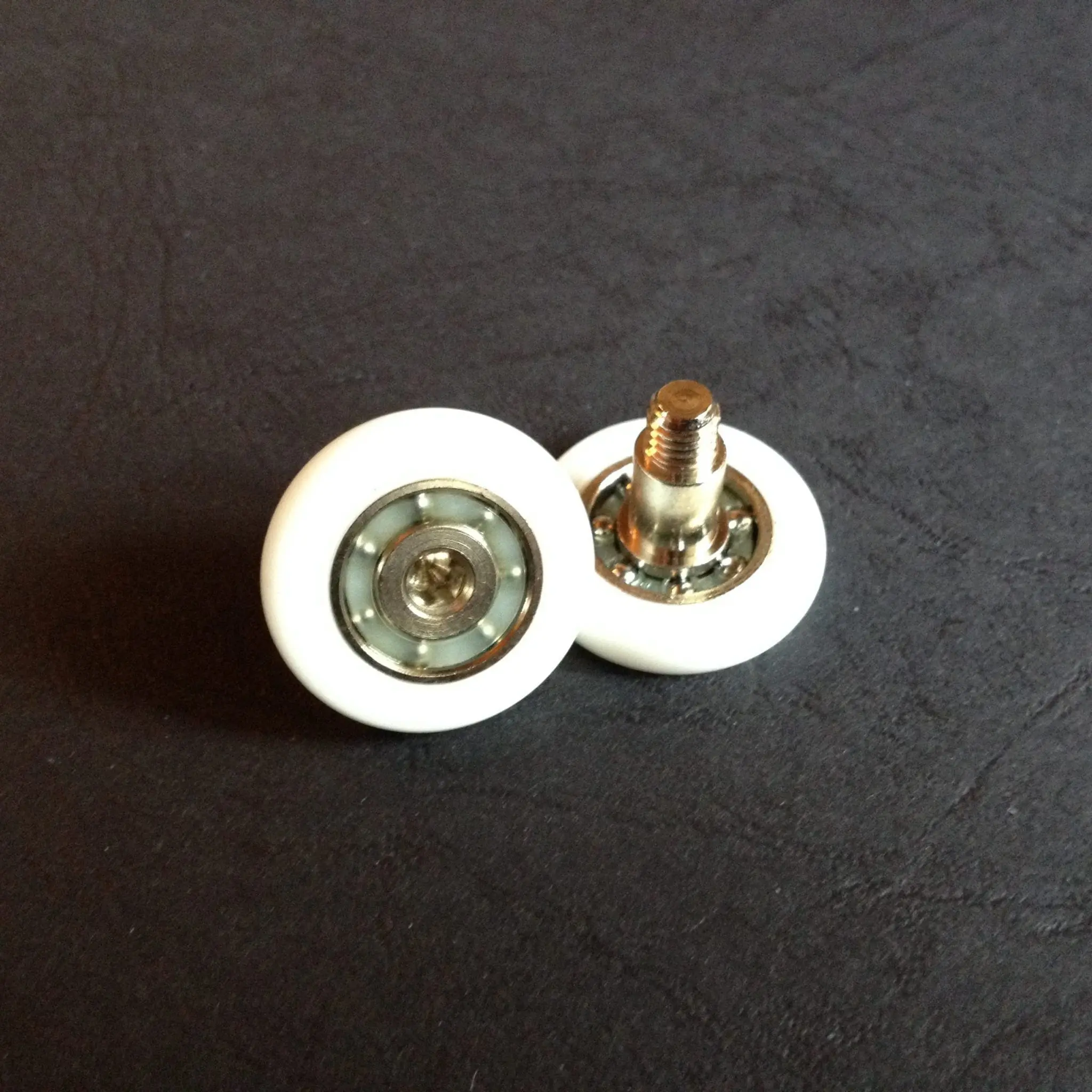Roulette droite simple pour porte coulissante de cabine de douche. Vendue à l’unité, cette roulette se compose d’un corps en laiton. Le bandage de la roulette est en téflon, recouvrant un roulement à billes étanche en acier inoxydable. Le choix et la qualité des matériaux employés offrent une utilisation optimale de confort, limitant ainsi le frottement et le bruit lors de la manipulation de la porte.