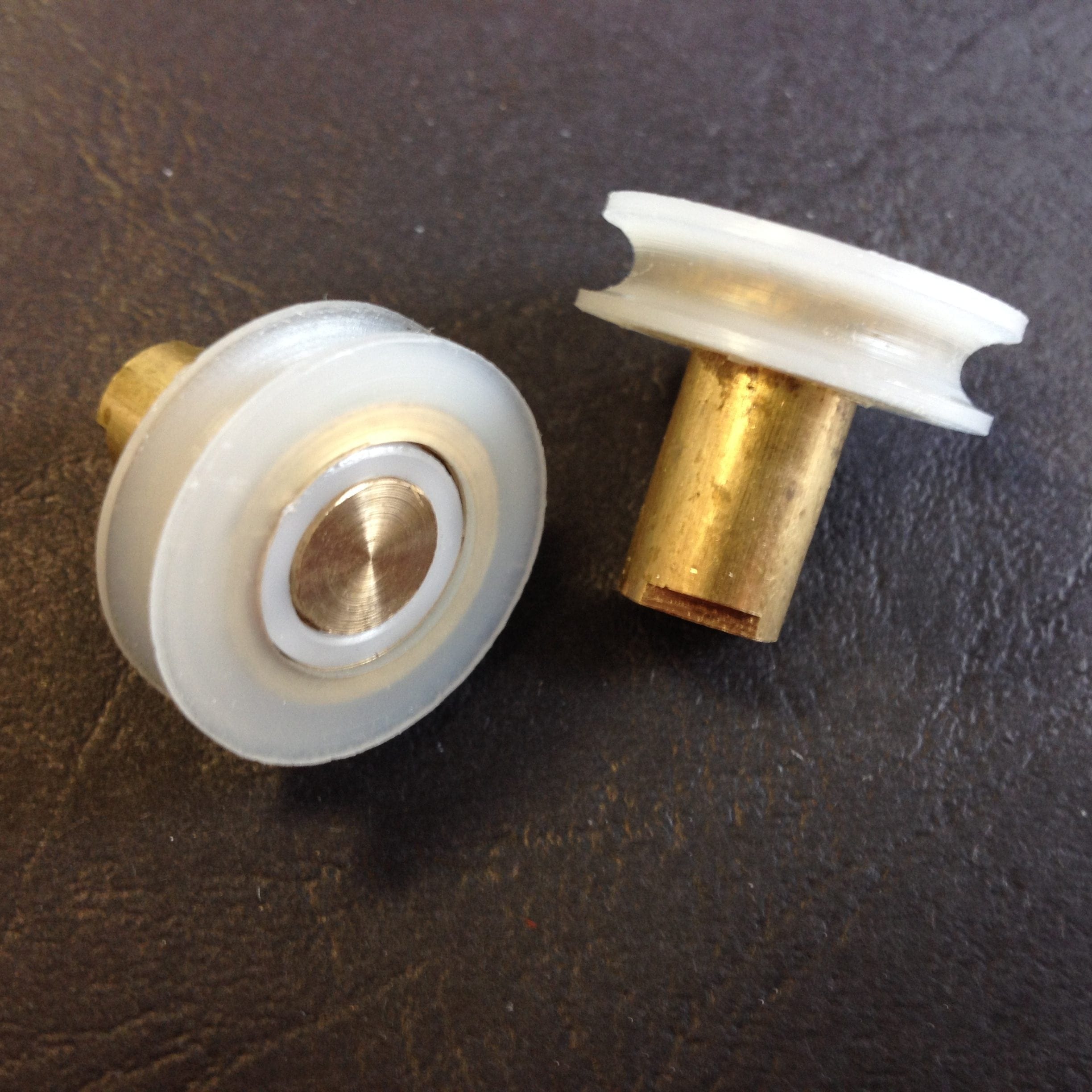 Roulette simple droite à gorge en U pour porte coulissante de cabine de douche. Vendues par lot de 4, ces roulettes se composent d”un corps en laiton. Le bandage de la roulette est en téflon, recouvrant un roulement à billes étanche en acier inoxydable. Le choix et la qualité des matériaux employés offrent une utilisation optimale de confort, limitant ainsi le frottement et le bruit lors de la manipulation de la porte.