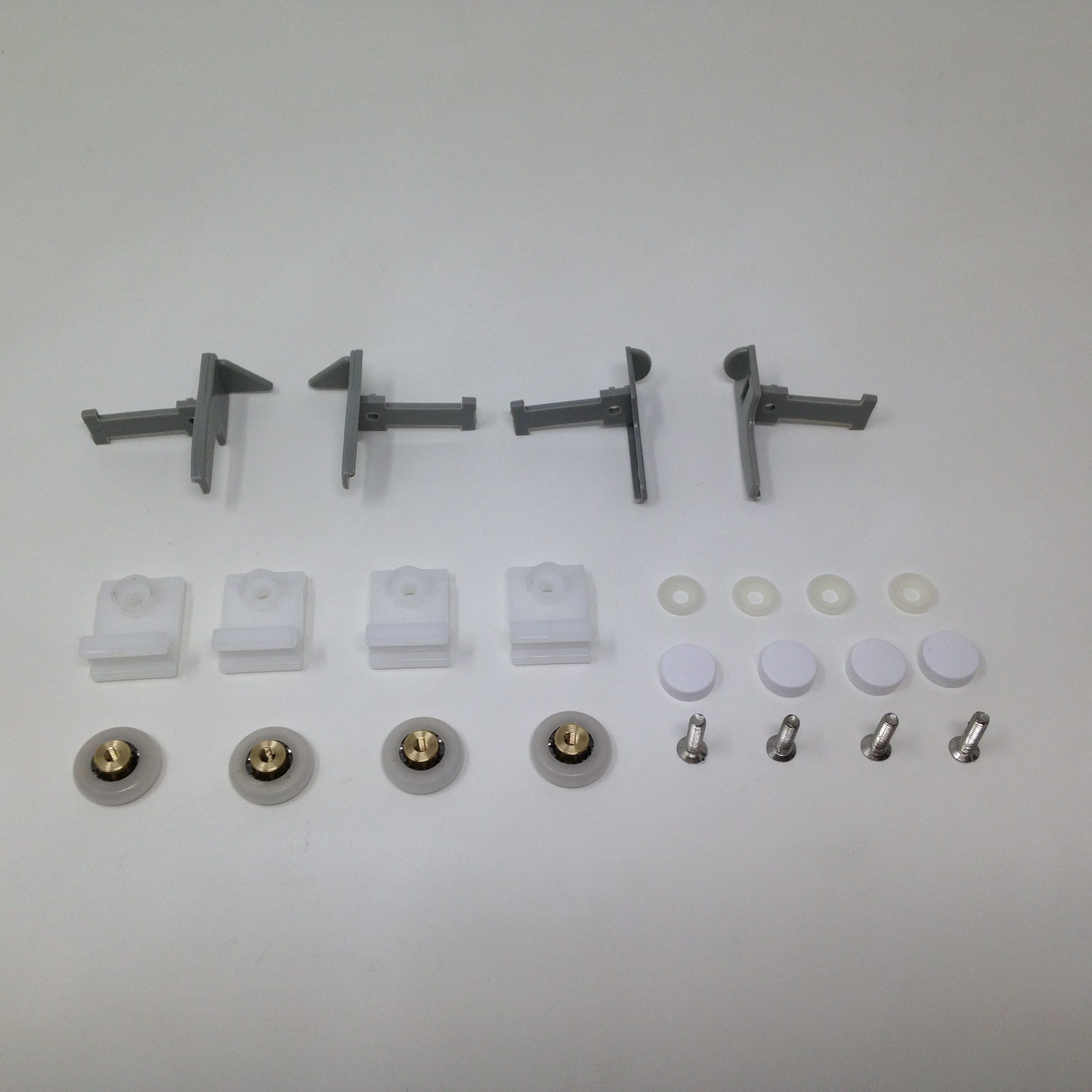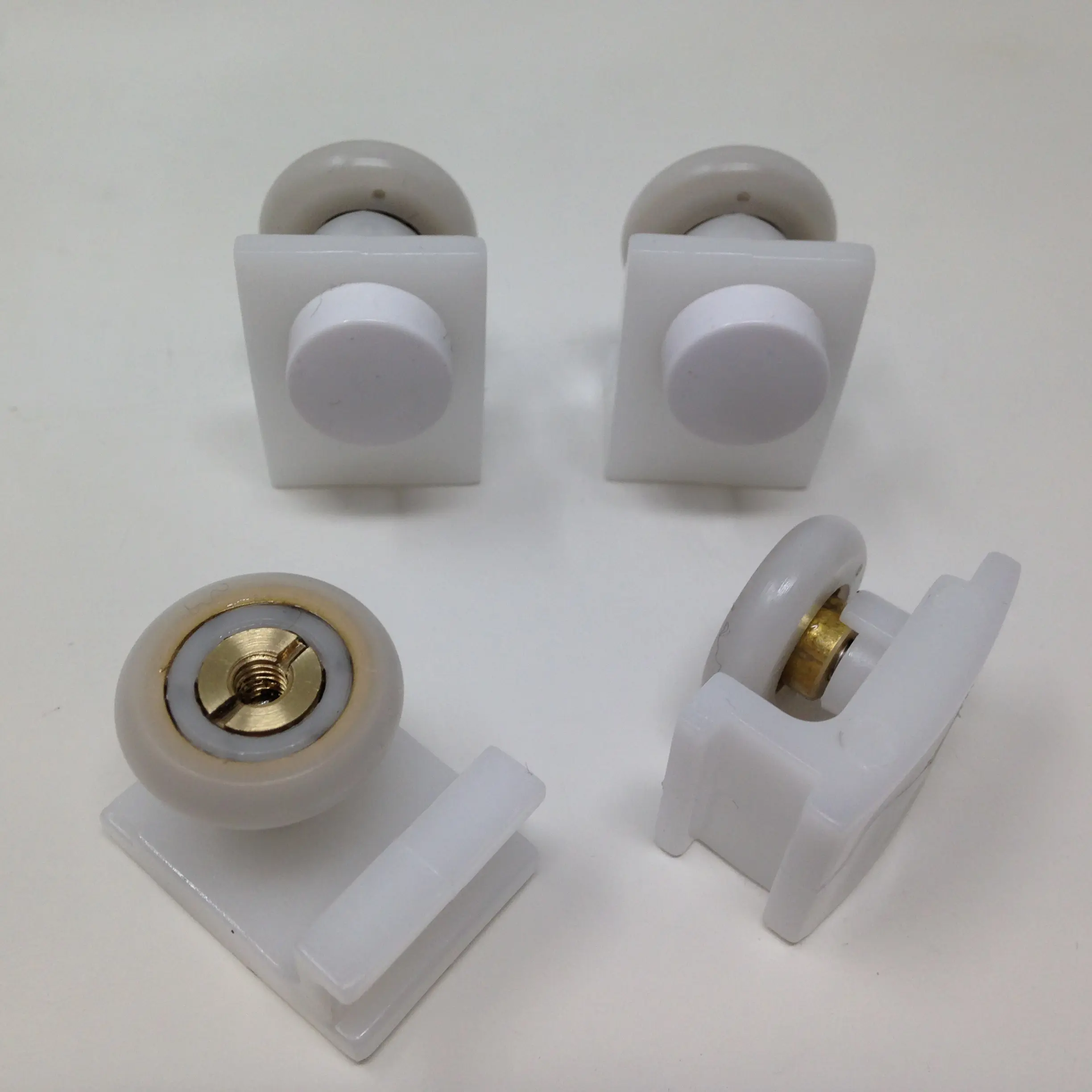 Roulette simple droite vendu avec son kit complet composé de fixations, supports, cache-écrou pour porte coulissante de cabine de douche. Vendues par lot de 4, ces roulettes se composent d’un corps en acier inoxydable. Le bandage de la roulette est en téflon, recouvrant un roulement à billes étanche en acier inoxydable. Le choix et la qualité des matériaux employés offrent une utilisation optimale de confort, limitant ainsi le frottement et le bruit lors de la manipulation de la porte.