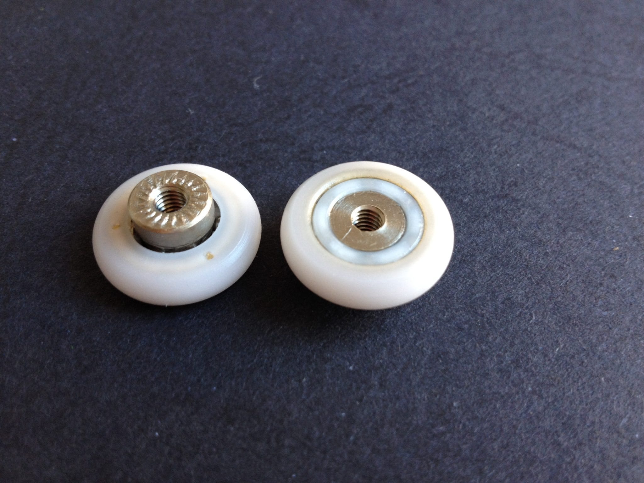 Roulette simple droite pour porte coulissante de cabine de douche. Vendues par lot de 4, ces roulettes se composent d’un corps en acier inoxydable. Le bandage de la roulette est en téflon, recouvrant un roulement à billes étanche en acier inoxydable. Le choix et la qualité des matériaux employés offrent une utilisation optimale de confort, limitant ainsi le frottement et le bruit lors de la manipulation de la porte.