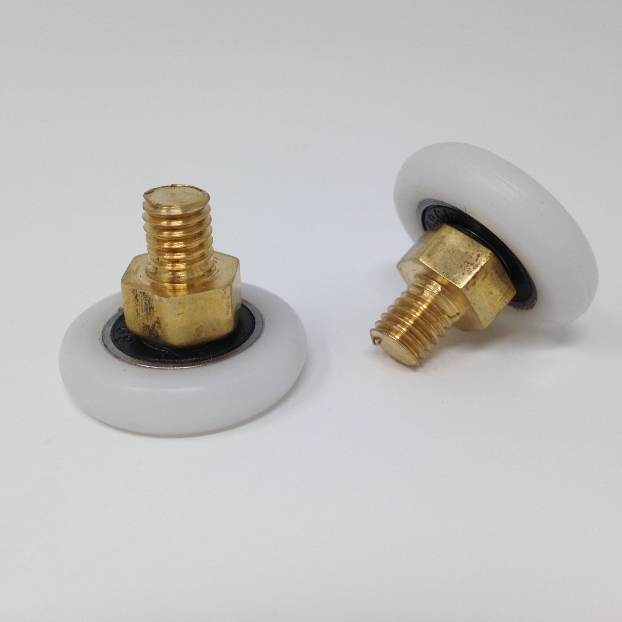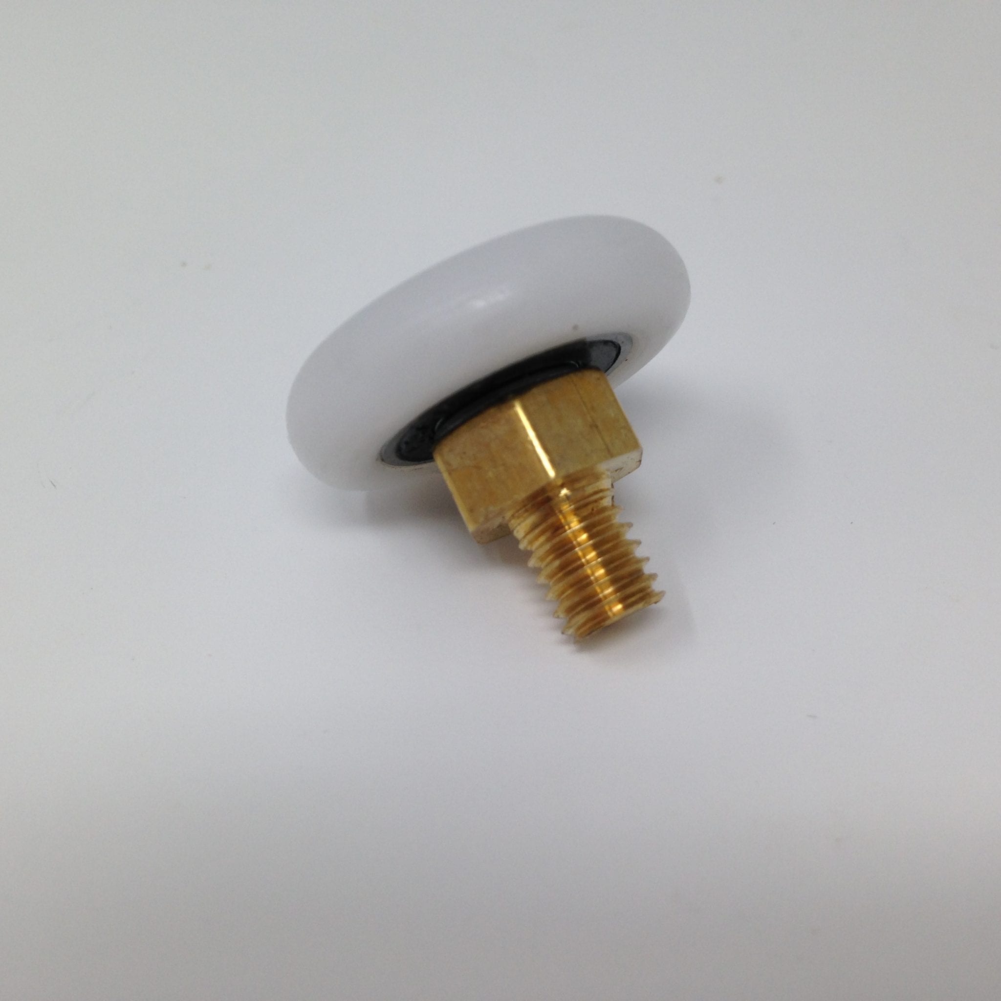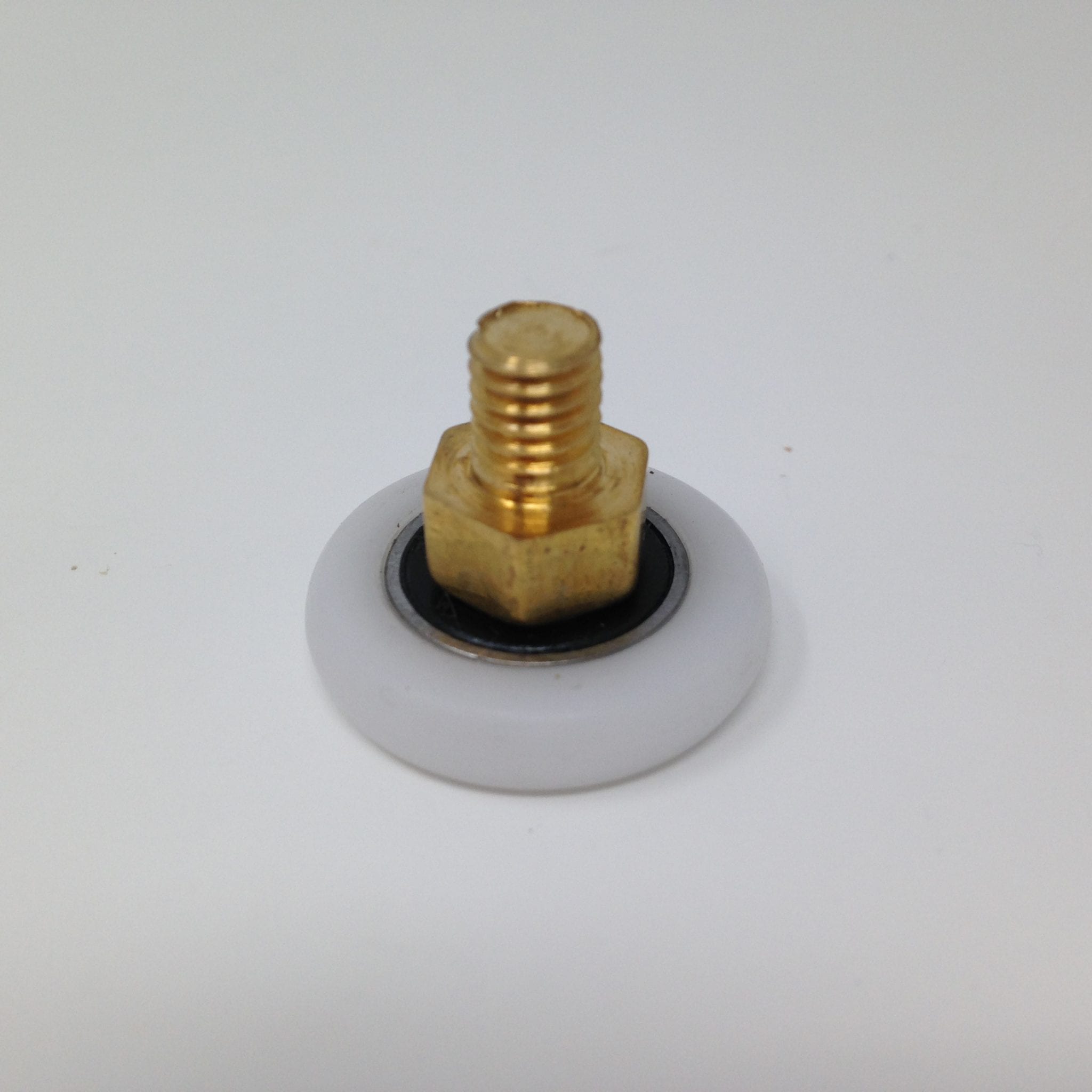 Roulette droite 6 pans simple pour porte coulissante de cabine de douche. Vendue par lot de 2, cette roulette se compose d’un corps en laiton. Le bandage de la roulette est en téflon, recouvrant un roulement à billes étanche en acier inoxydable. Le choix et la qualité des matériaux employés offrent une utilisation optimale de confort, limitant ainsi le frottement et le bruit lors de la manipulation de la porte.