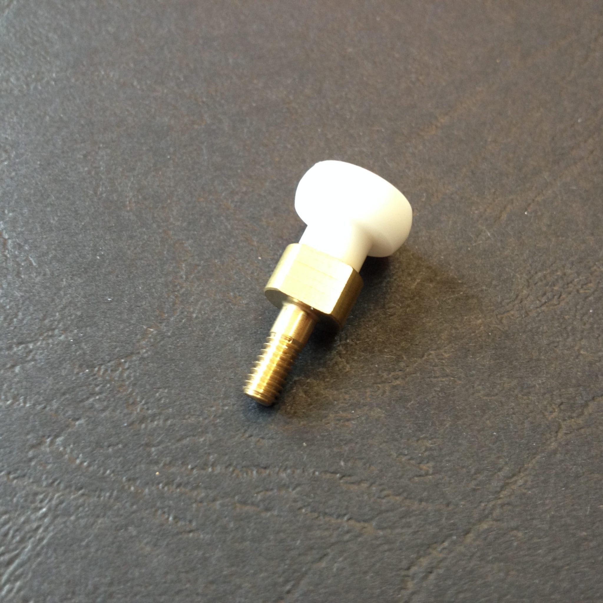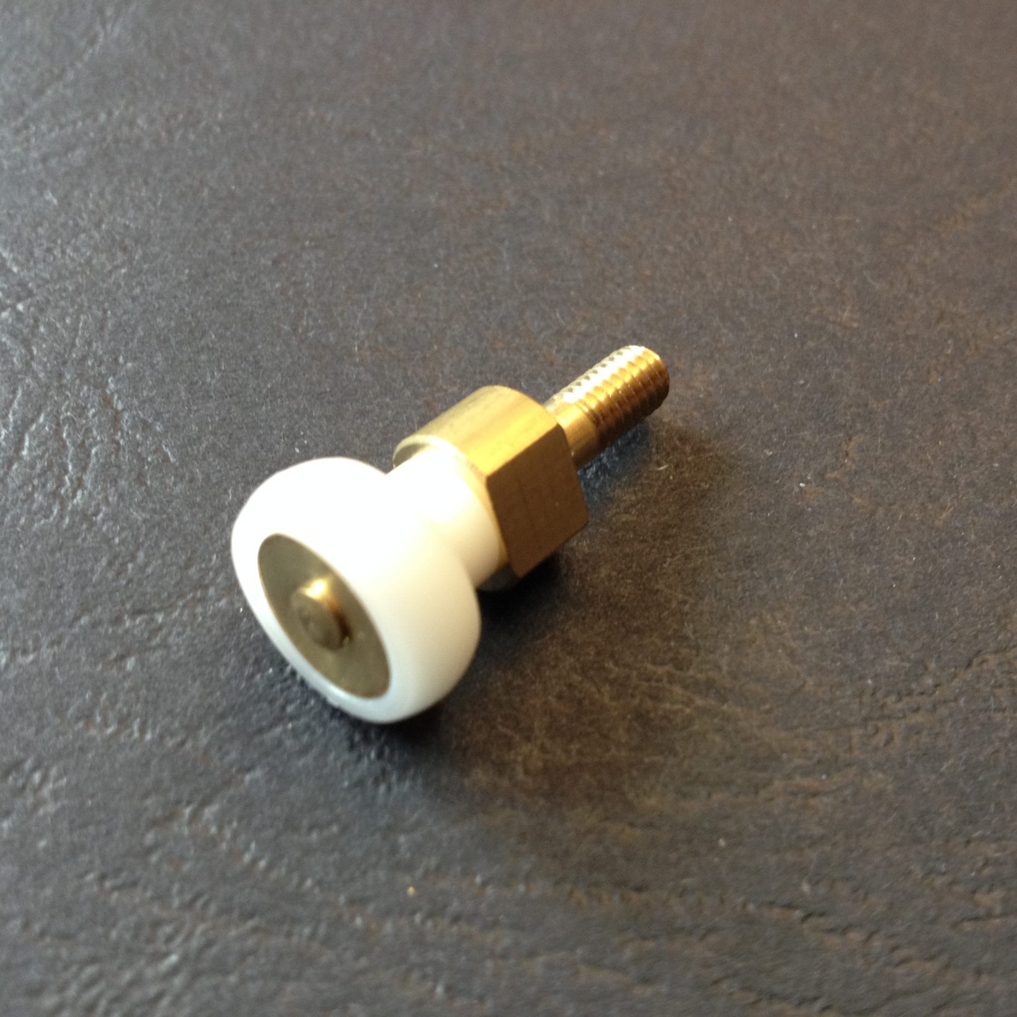 Roulette simple droite pour porte coulissante de cabine de douche. Vendue à l’unité, cette roulette se compose d’un corps en laiton. Le bandage de la roulette est en téflon, recouvrant un roulement à billes étanche en acier inoxydable. Le choix et la qualité des matériaux employés offrent une utilisation optimale de confort, limitant ainsi le frottement et le bruit lors de la manipulation de la porte.