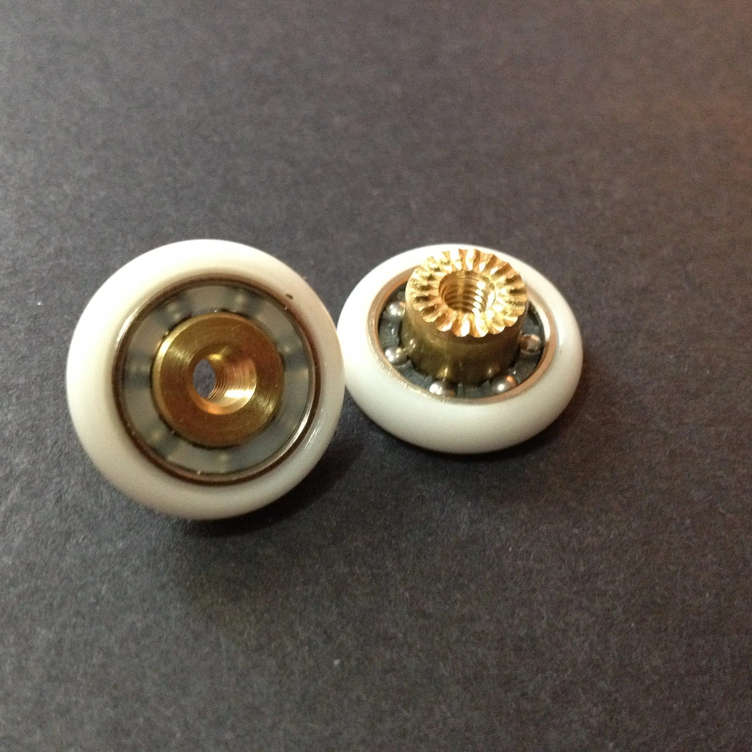 Roulette simple droite pour porte coulissante de cabine de douche. Vendue à l’unité, cette roulette se compose d’un corps en laiton. Le bandage de la roulette est en téflon, recouvrant un roulement à billes étanche en acier inoxydable. Le choix et la qualité des matériaux employés offrent une utilisation optimale de confort, limitant ainsi le frottement et le bruit lors de la manipulation de la porte.