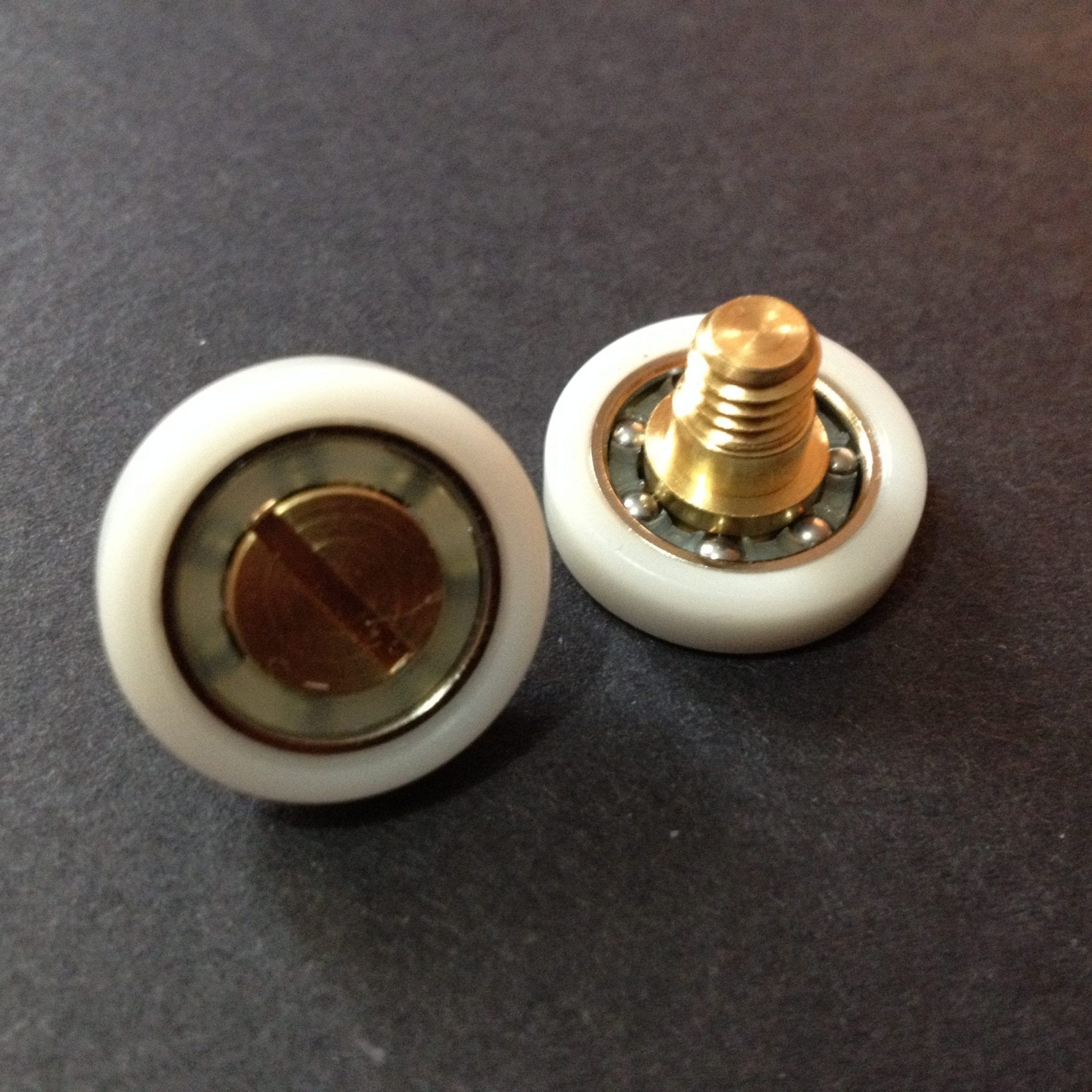 Roulette simple droite pour porte coulissante de cabine de douche. Vendue à l’unité, cette roulette se compose d’un corps en laiton. Le bandage de la roulette est en téflon, recouvrant un roulement à billes étanche en acier inoxydable. Le choix et la qualité des matériaux employés offrent une utilisation optimale de confort, limitant ainsi le frottement et le bruit lors de la manipulation de la porte.