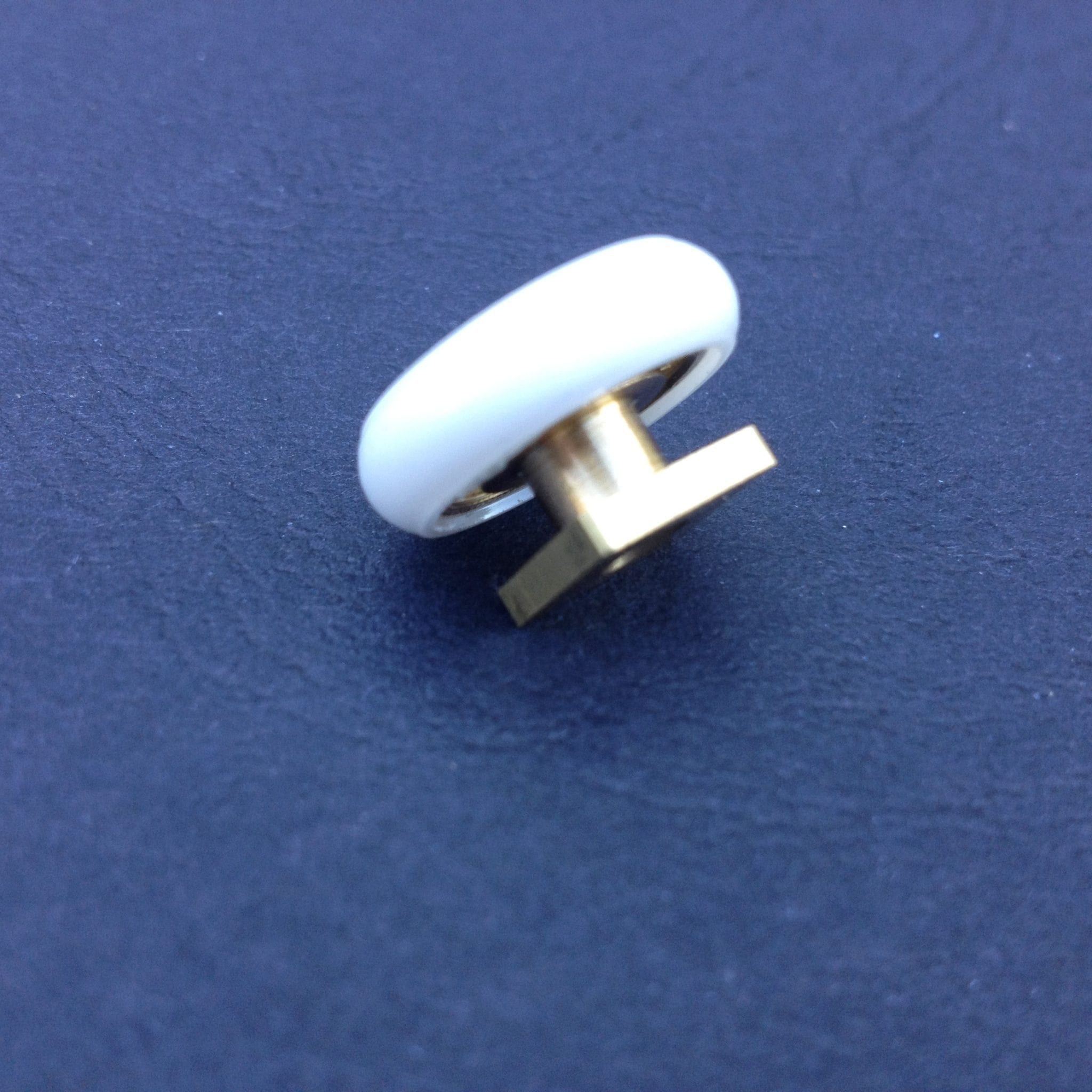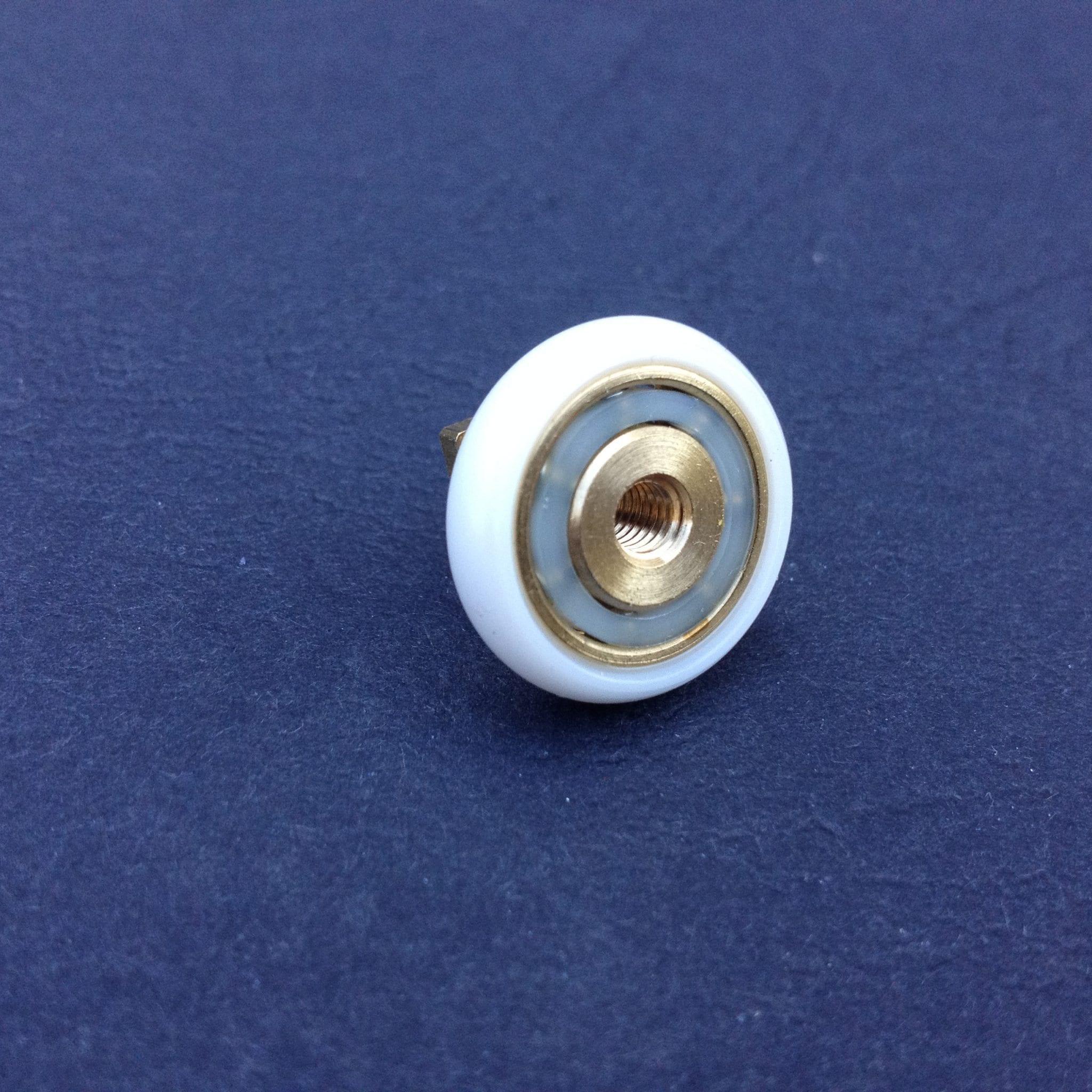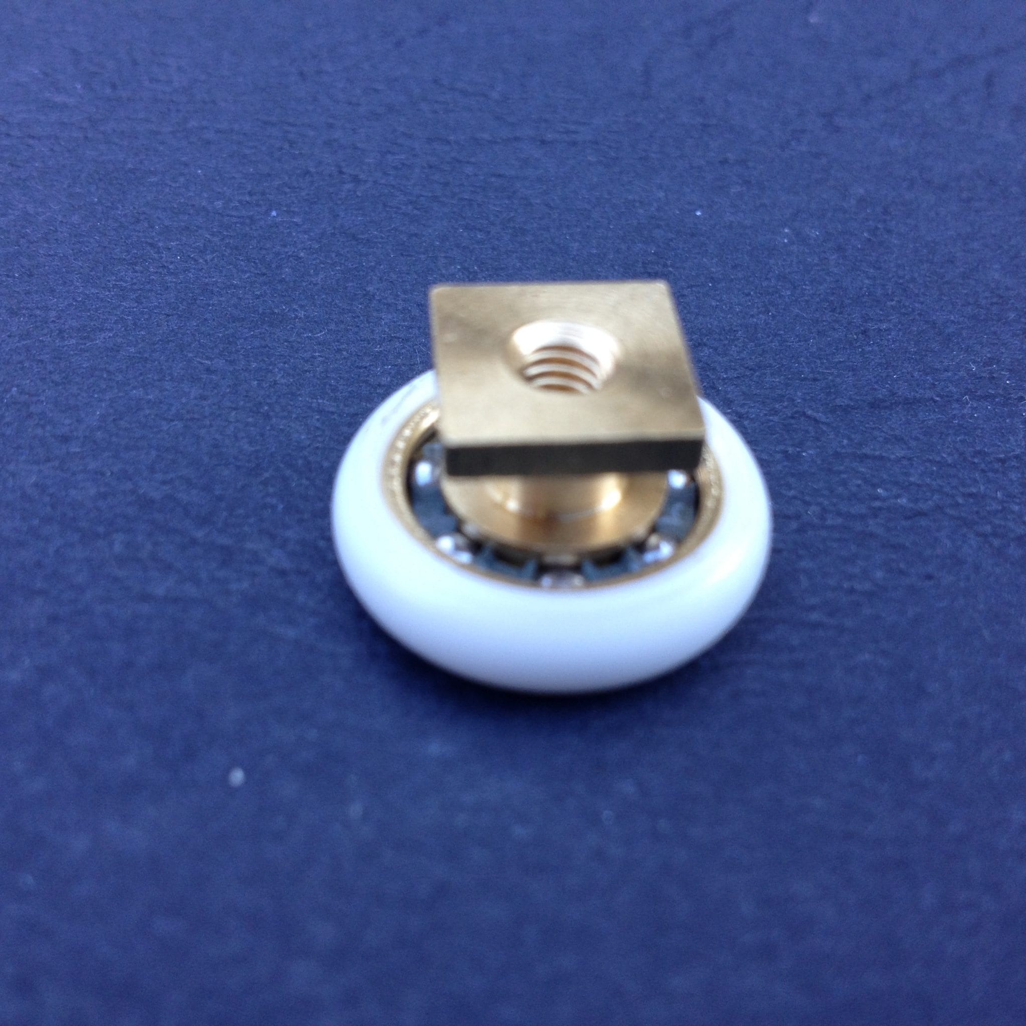 Roulette simple droite à pour porte coulissante de cabine de douche. Vendue à l’unité, cette roulette se compose d’un corps en laiton. Le bandage de la roulette est en téflon, recouvrant un roulement à billes étanche en acier inoxydable. Le choix et la qualité des matériaux employés offrent une utilisation optimale de confort, limitant ainsi le frottement et le bruit lors de la manipulation de la porte.