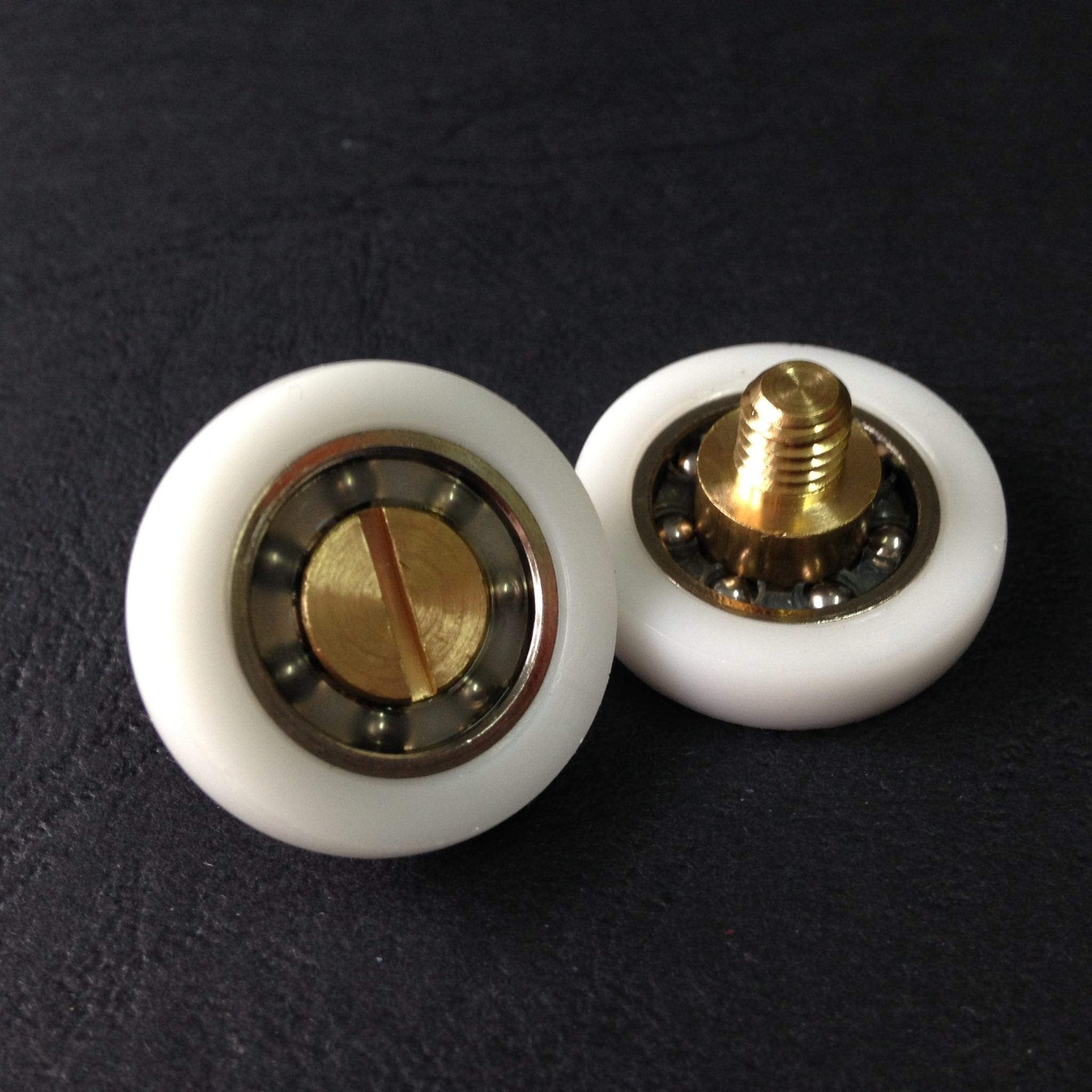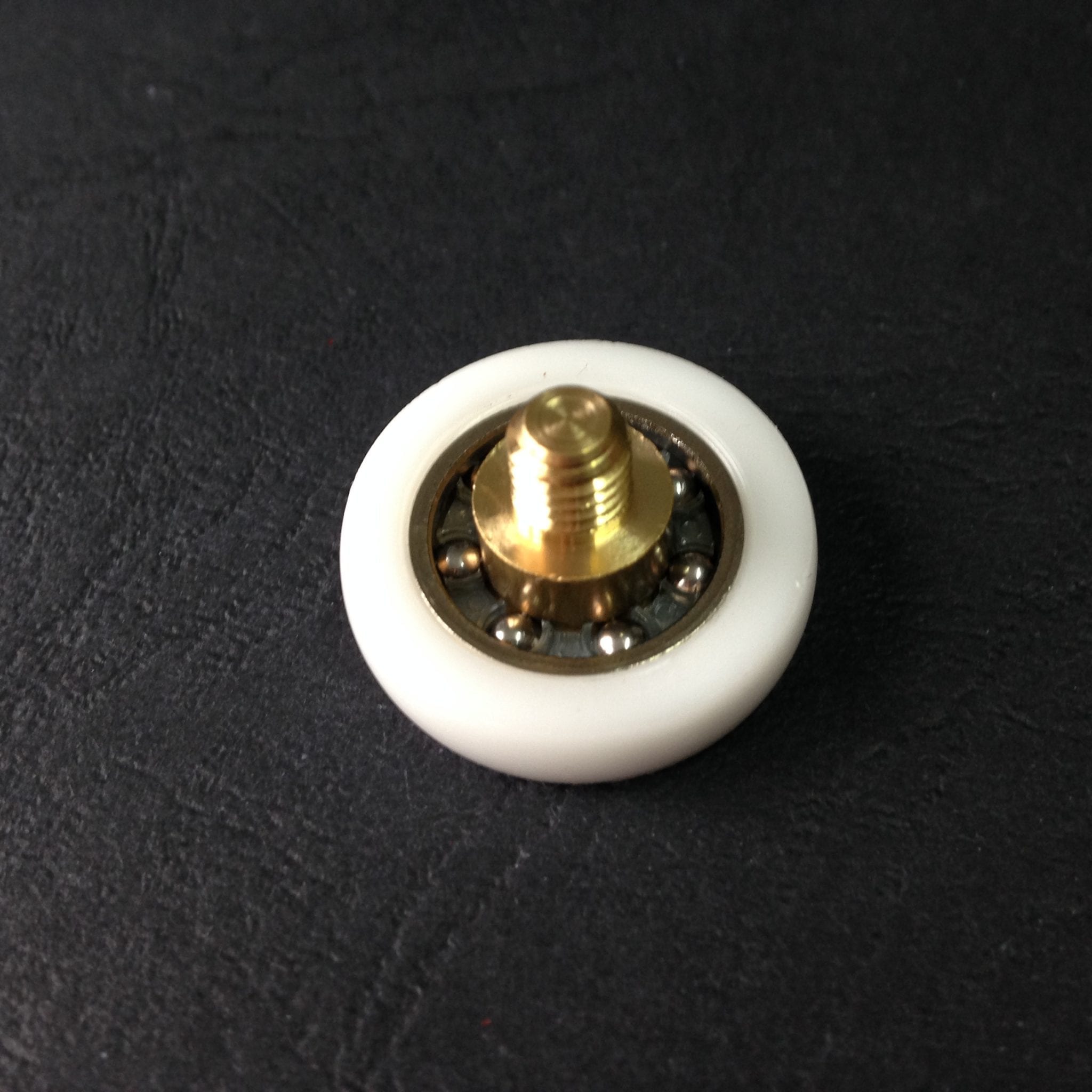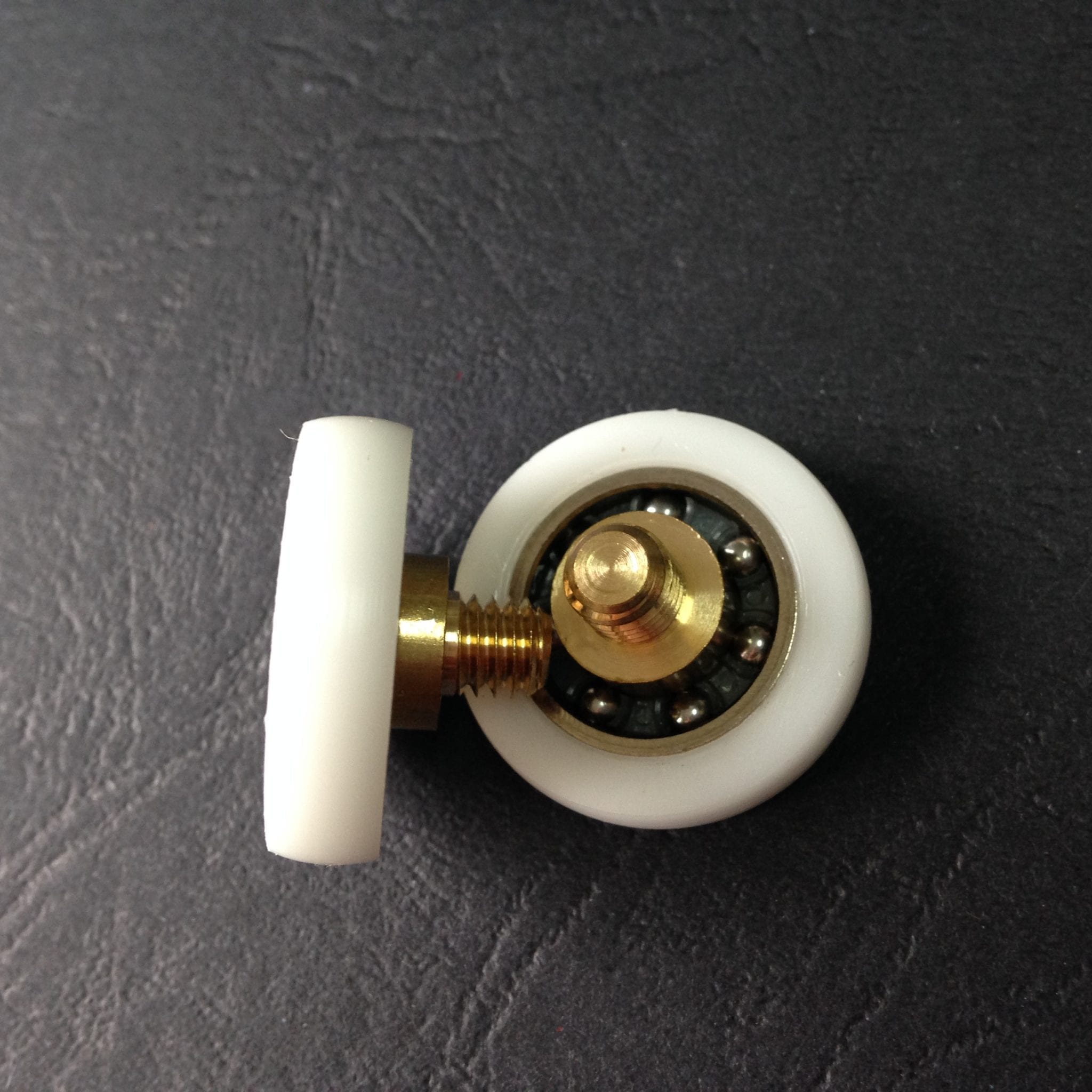 Roulette simple droite pour porte coulissante de cabine de douche. Vendue à l’unité, cette roulette se compose d’un corps en laiton. Le bandage de la roulette est en téflon, recouvrant un roulement à billes étanche en acier inoxydable. Le choix et la qualité des matériaux employés offrent une utilisation optimale de confort, limitant ainsi le frottement et le bruit lors de la manipulation de la porte.
