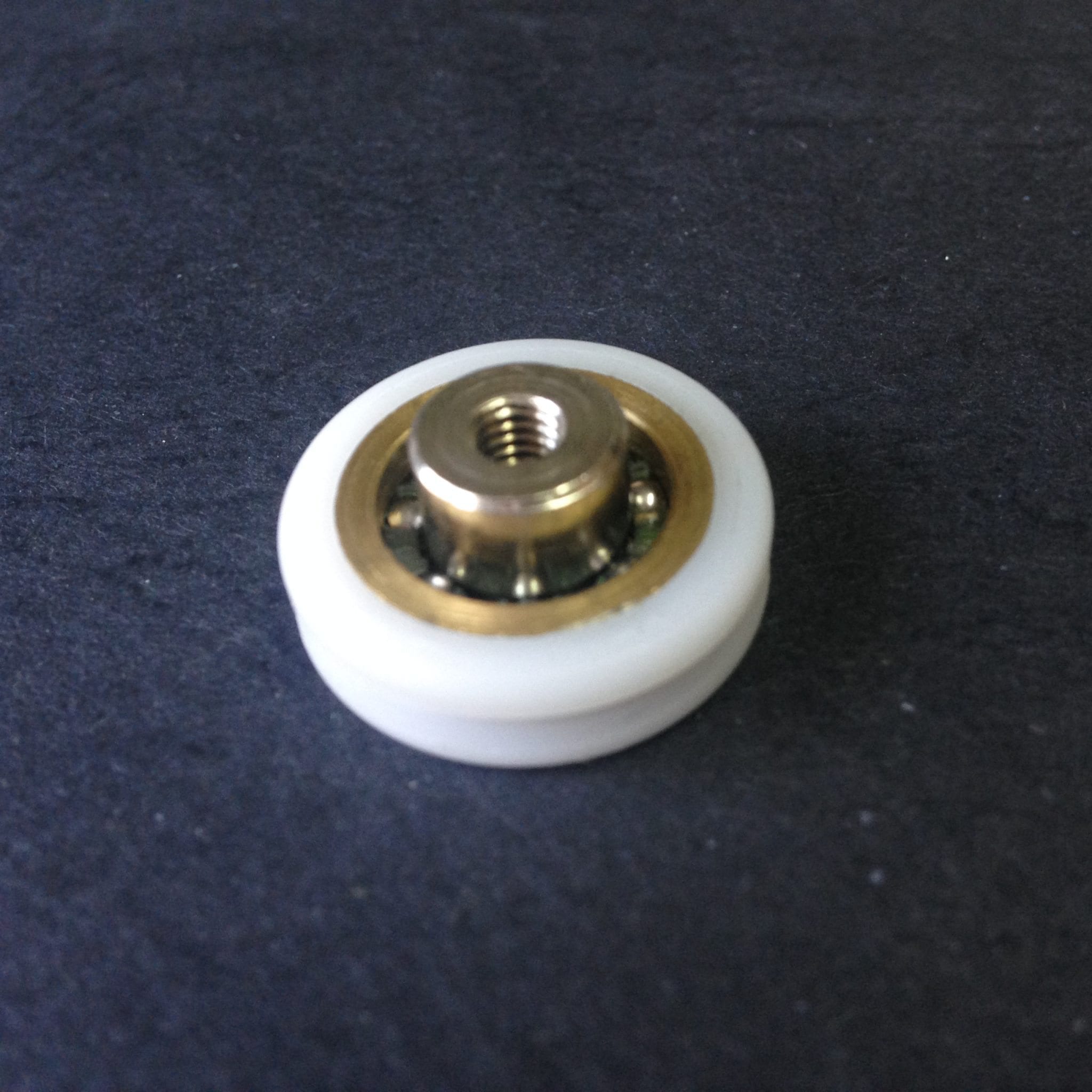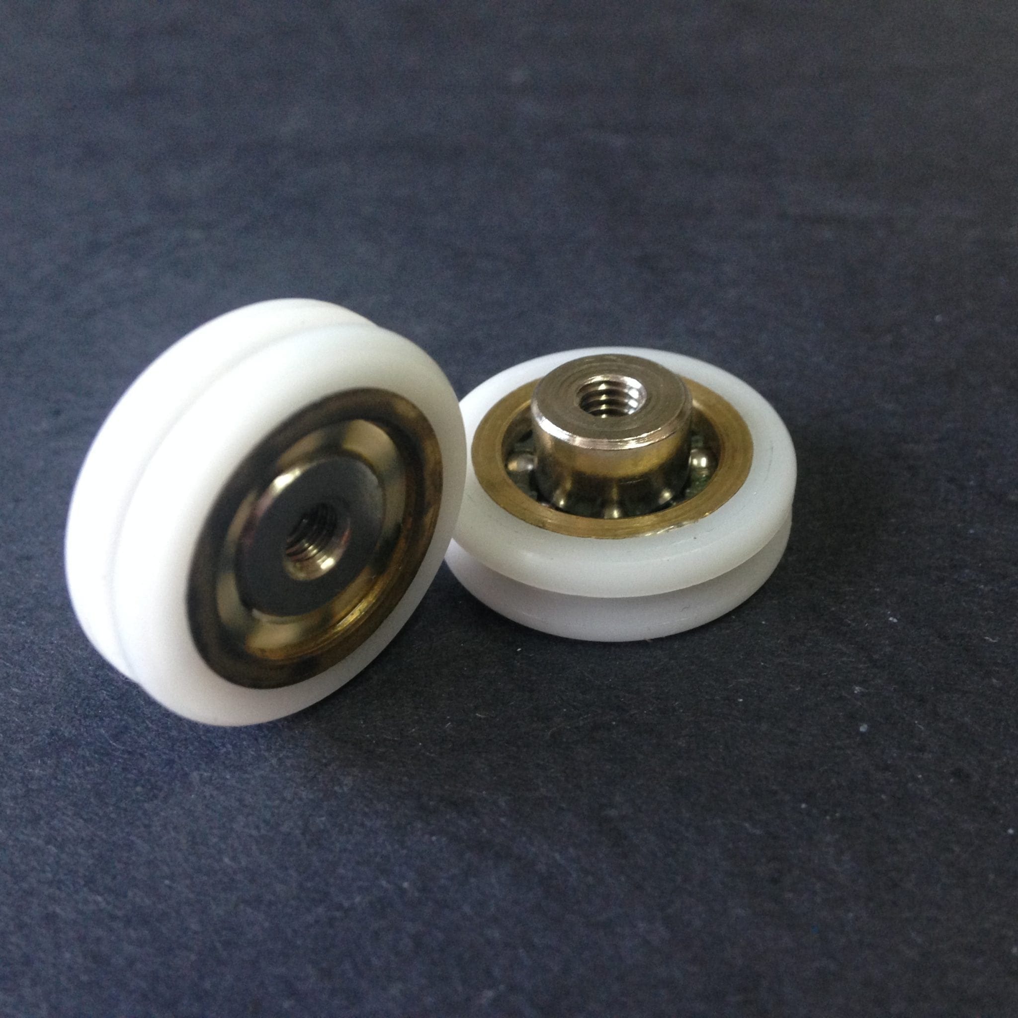 Roulette droite simple pour porte coulissante de cabine de douche. Vendue à l’unité, cette roulette se compose d’un corps en laiton. Le bandage plat de la roulette est en téflon, recouvrant un roulement à billes étanche en acier inoxydable. Le choix et la qualité des matériaux employés offrent une utilisation optimale de confort, limitant ainsi le frottement et le bruit lors de la manipulation de la porte.