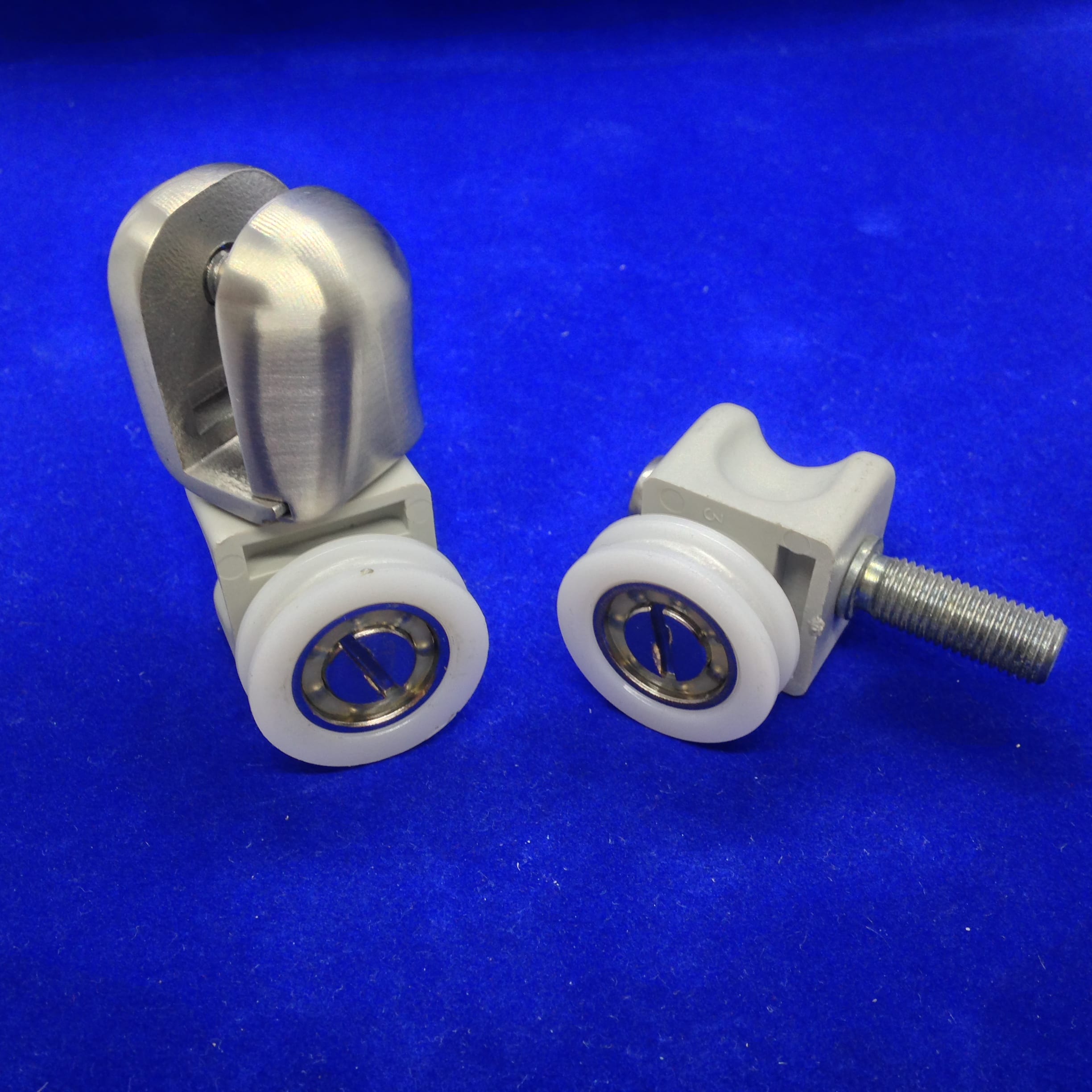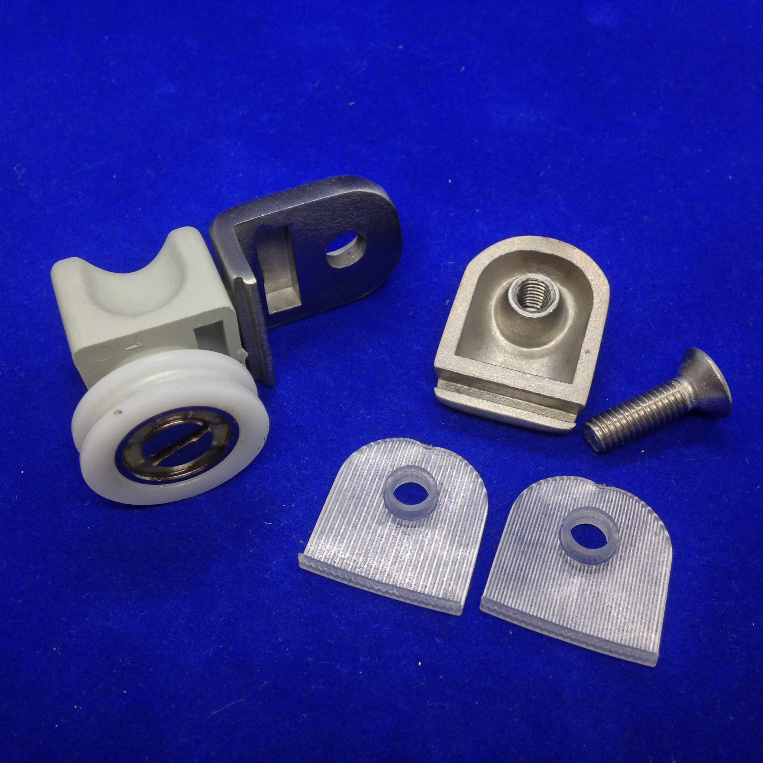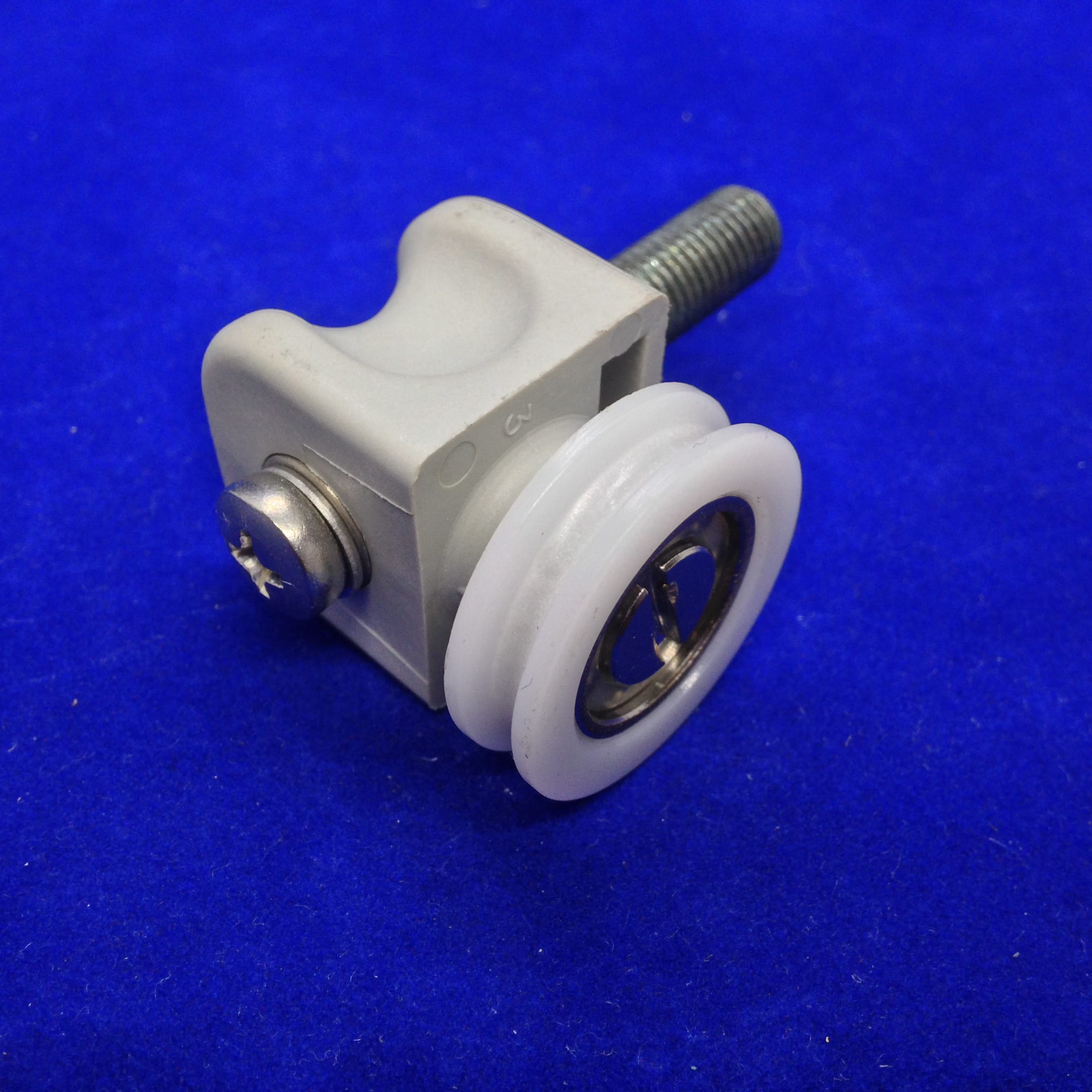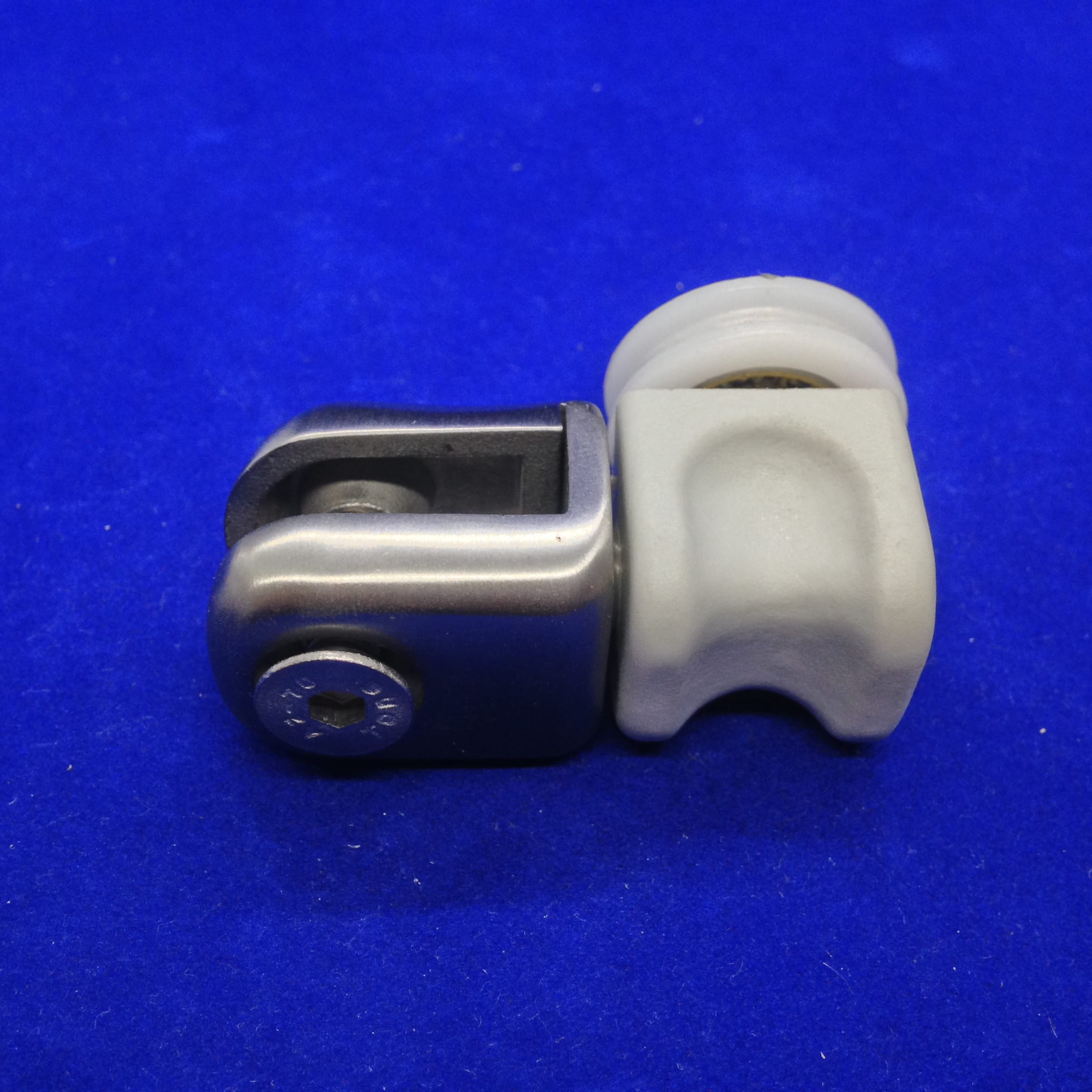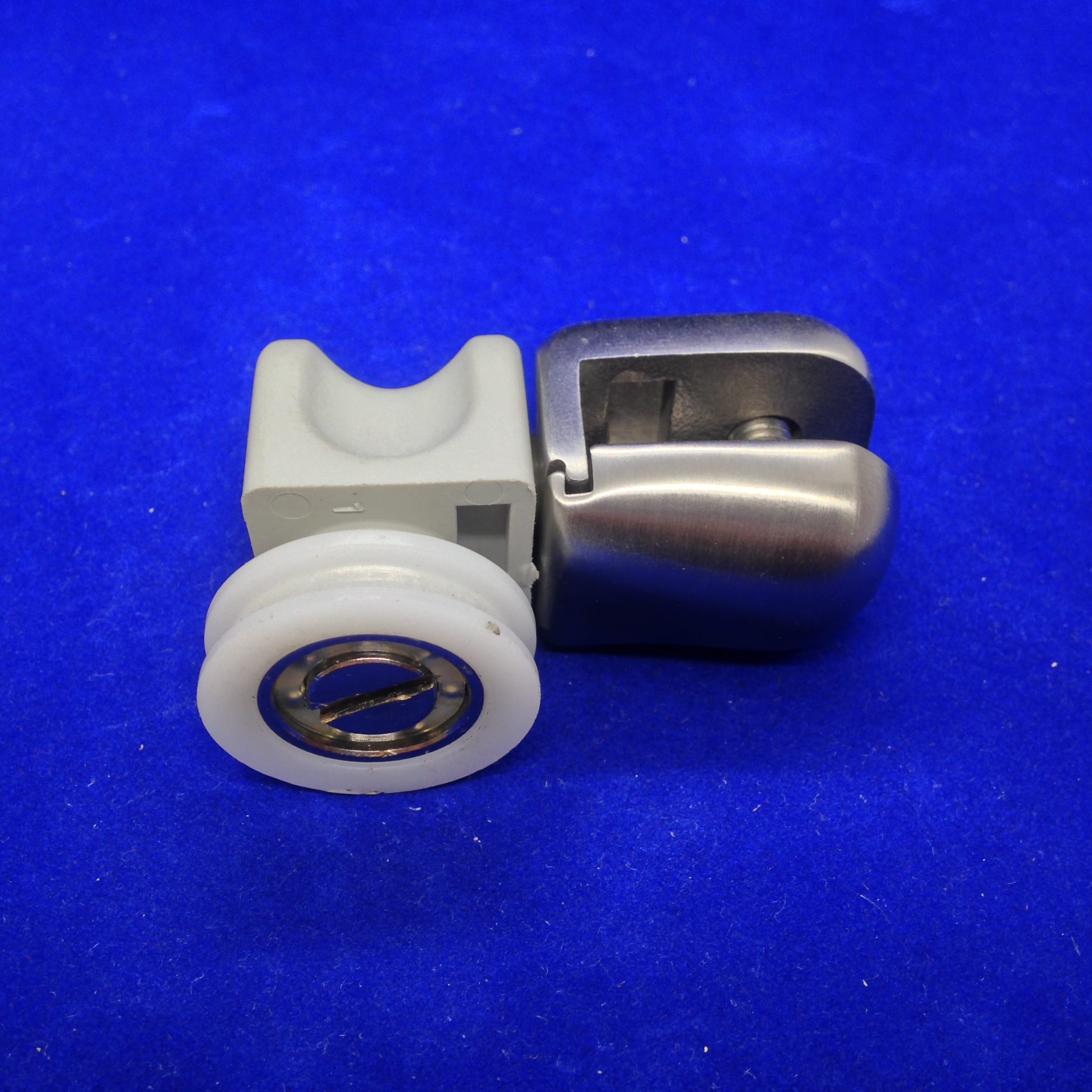 Roulette simple droite avec gorge en U pour porte coulissante de cabine de douche. Vendue par lot de 2, cette roulette se compose d’un corps en laiton. Le bandage de la roulette est en téflon, recouvrant un roulement à billes étanche en acier inoxydable. Le choix et la qualité des matériaux employés offrent une utilisation optimale de confort, limitant ainsi le frottement et le bruit lors de la manipulation de la porte.